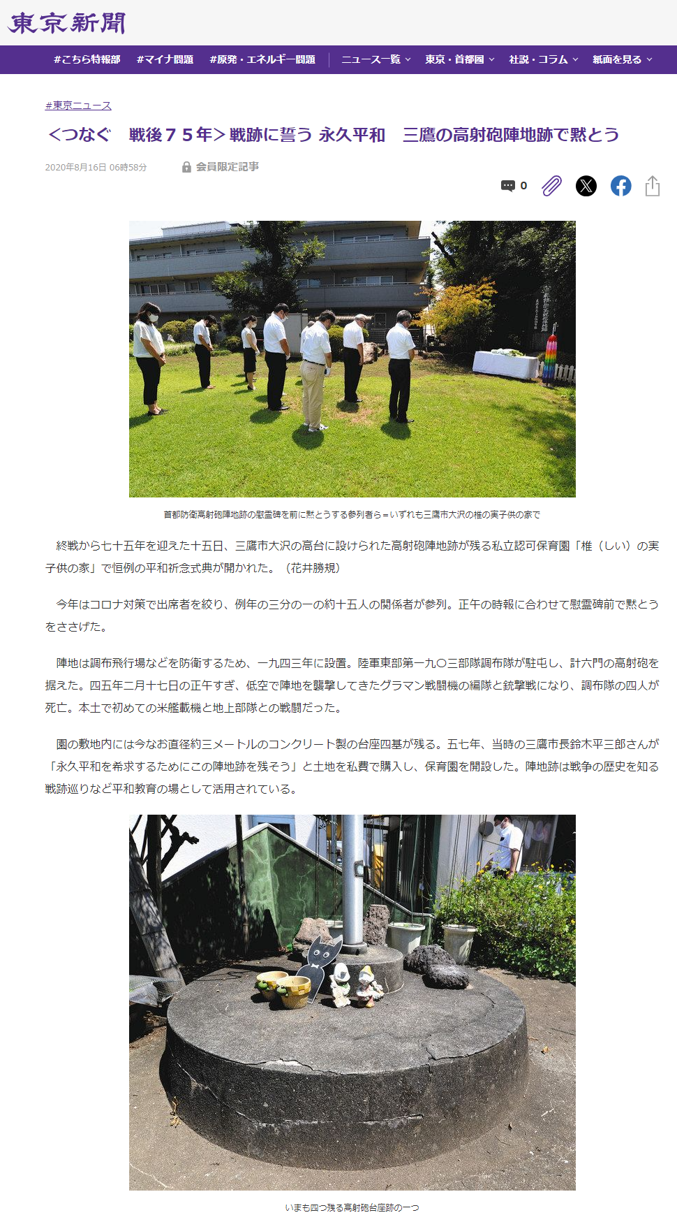 東京新聞 2020年8月16日 朝刊