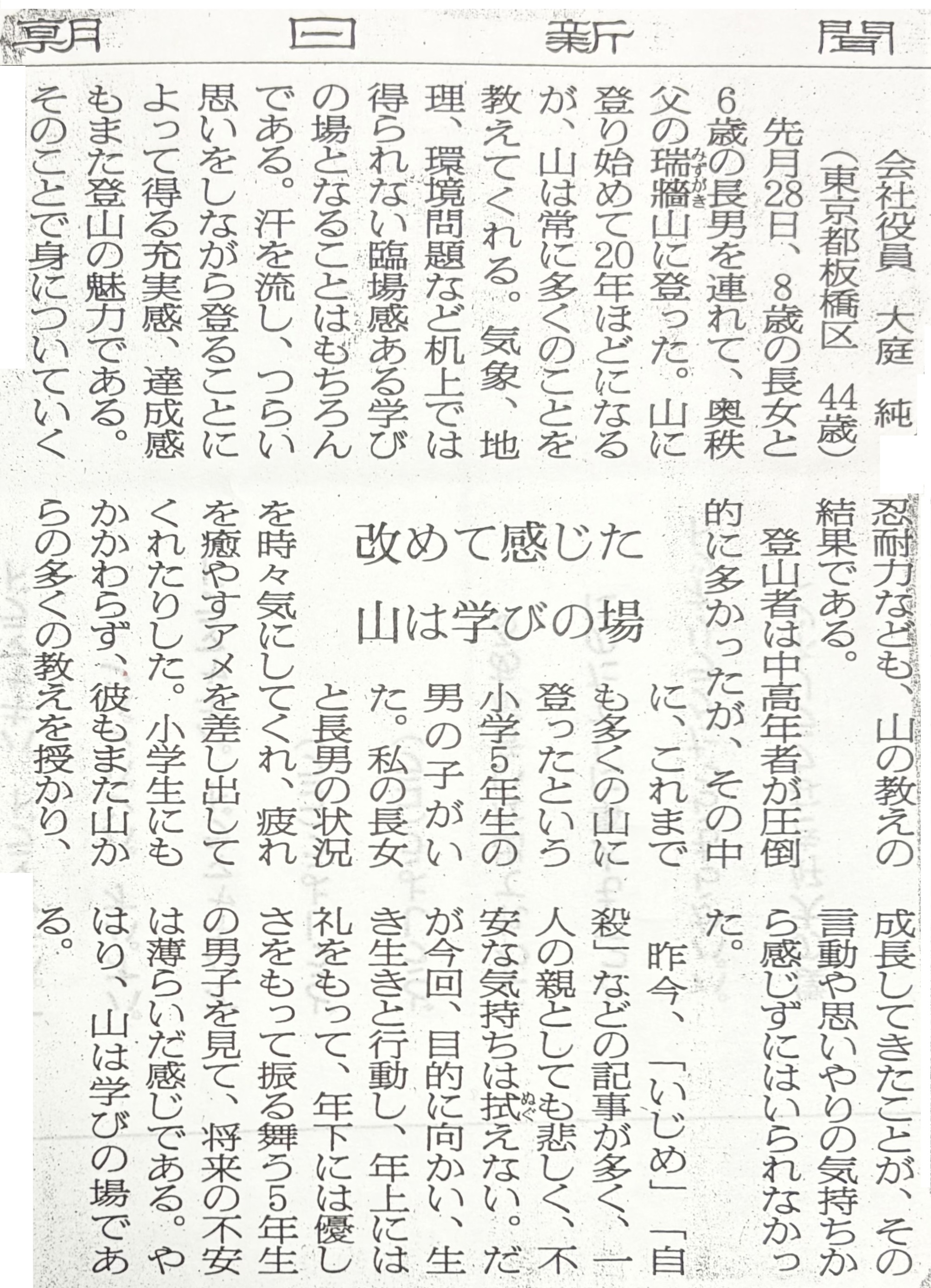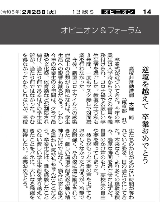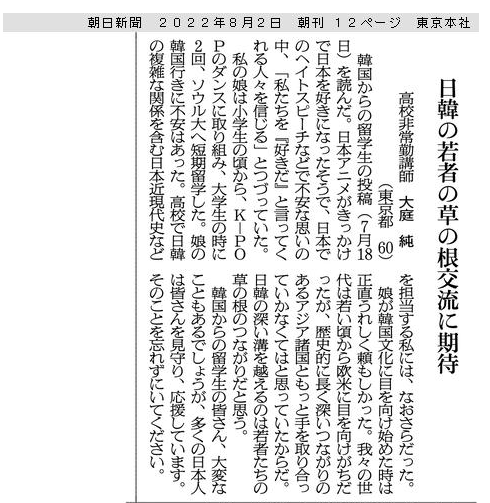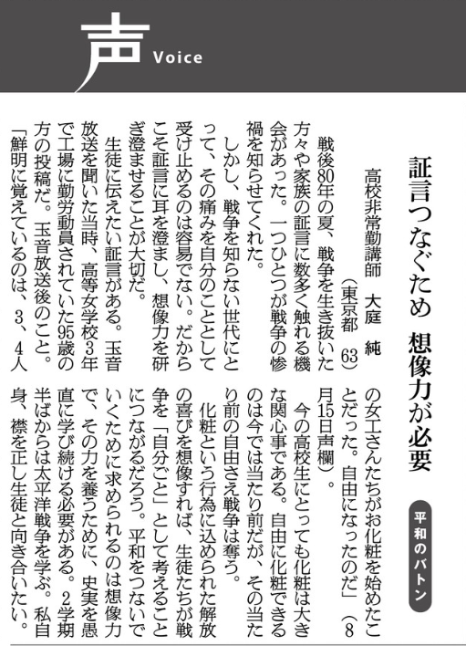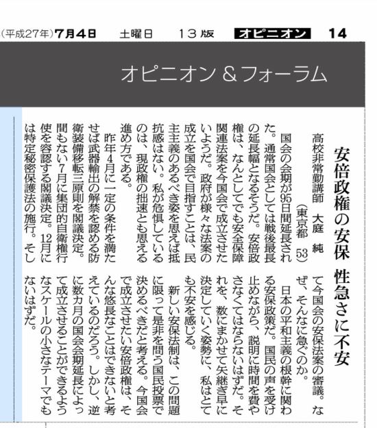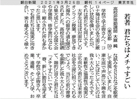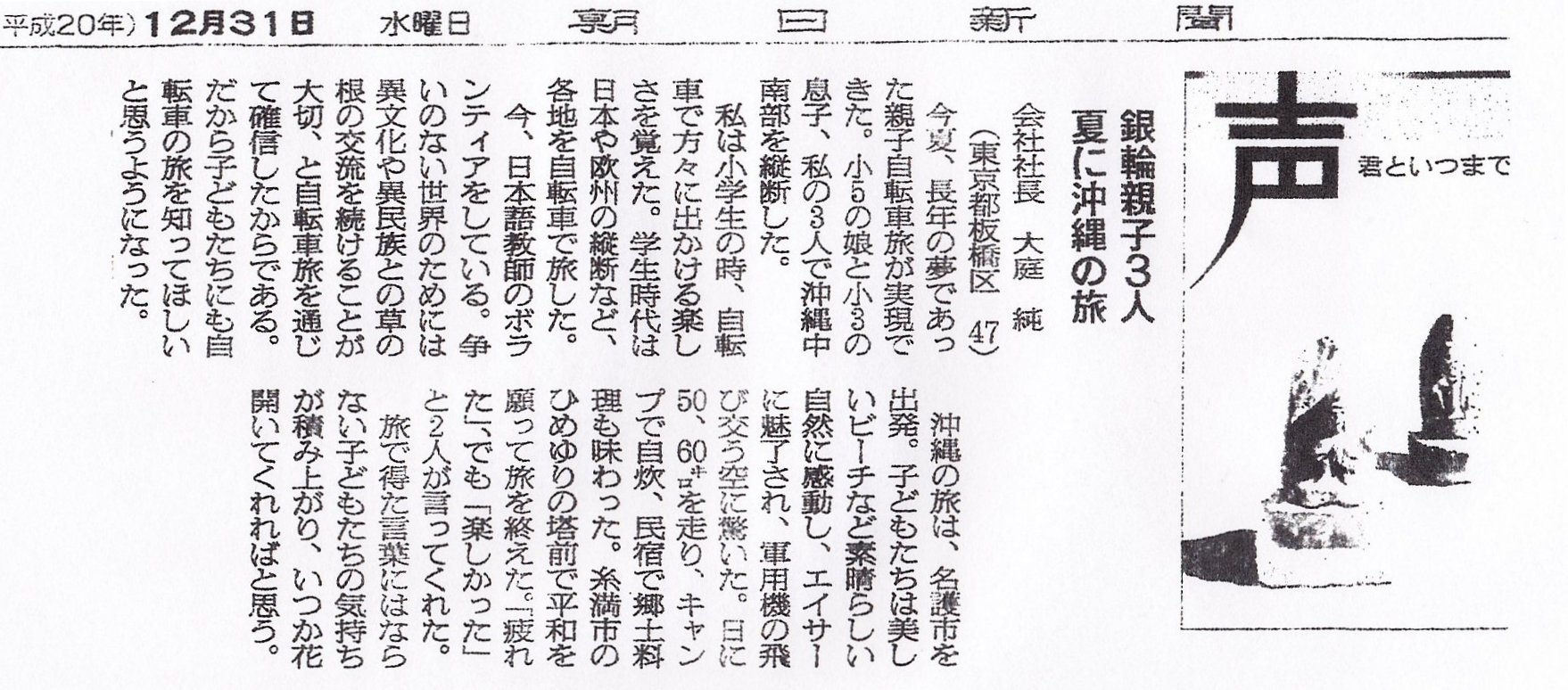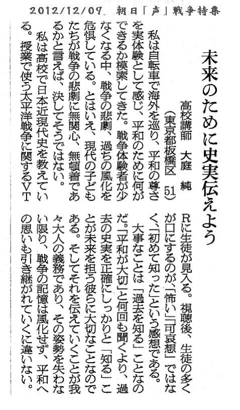 ※ その時々の思いを投稿してみました。 宜しければお読みください。 (不鮮明な部分もありますがご了承ください。) 2025年12月3日 讀賣新聞 2025年9月29日 朝日新聞 2025年6月30日 東京新聞 ![]() 2025年4月4日 朝日新聞 2024年11月12日 読売新聞 ![]() 2024年10月3日 毎日新聞 2024年2月19日 東京新聞 2023年2月28日 朝日新聞 ![]() 2022年8月2日 朝日新聞 ![]() 2021年3月26日 朝日新聞 ![]() 2020年4月4日 読売新聞 ![]() 2019年8月30日 朝日新聞 ![]() 2016年6月27日 朝日新聞 ![]() 2015年7月4日 朝日新聞 2015年1月6日 朝日新聞 ![]() 2014年6月22日 朝日新聞 ![]() 2014年3月9日 朝日新聞 ![]() 2013年9月19日 朝日新聞 ![]() ![]() 2013年6月14日 朝日新聞 ![]() 2013年3月18日 朝日新聞 ![]() 2012年12月9日 朝日新聞 ![]() 2012年 朝日新聞 ![]() 2012年6月25日 朝日新聞 ![]() 2012年 読売新聞 ![]() 2011年6月12日 朝日新聞 ![]() 2009年8月12日 朝日新聞 ![]() 2008年12月31日 朝日新聞 ![]() 2007年 朝日新聞 ![]() 2006年11月7日 朝日新聞 ![]() 2002年6月23日 朝日新聞 ![]()