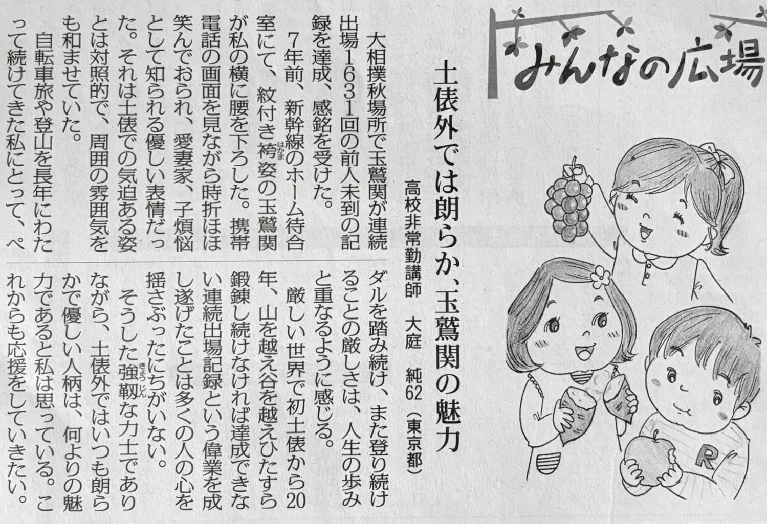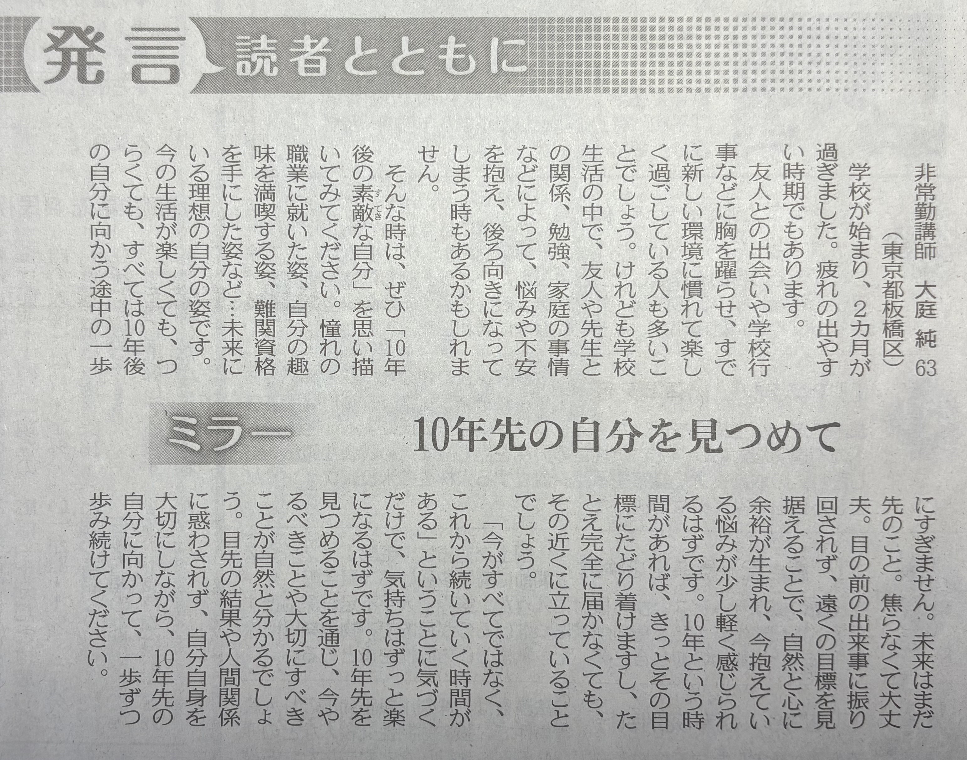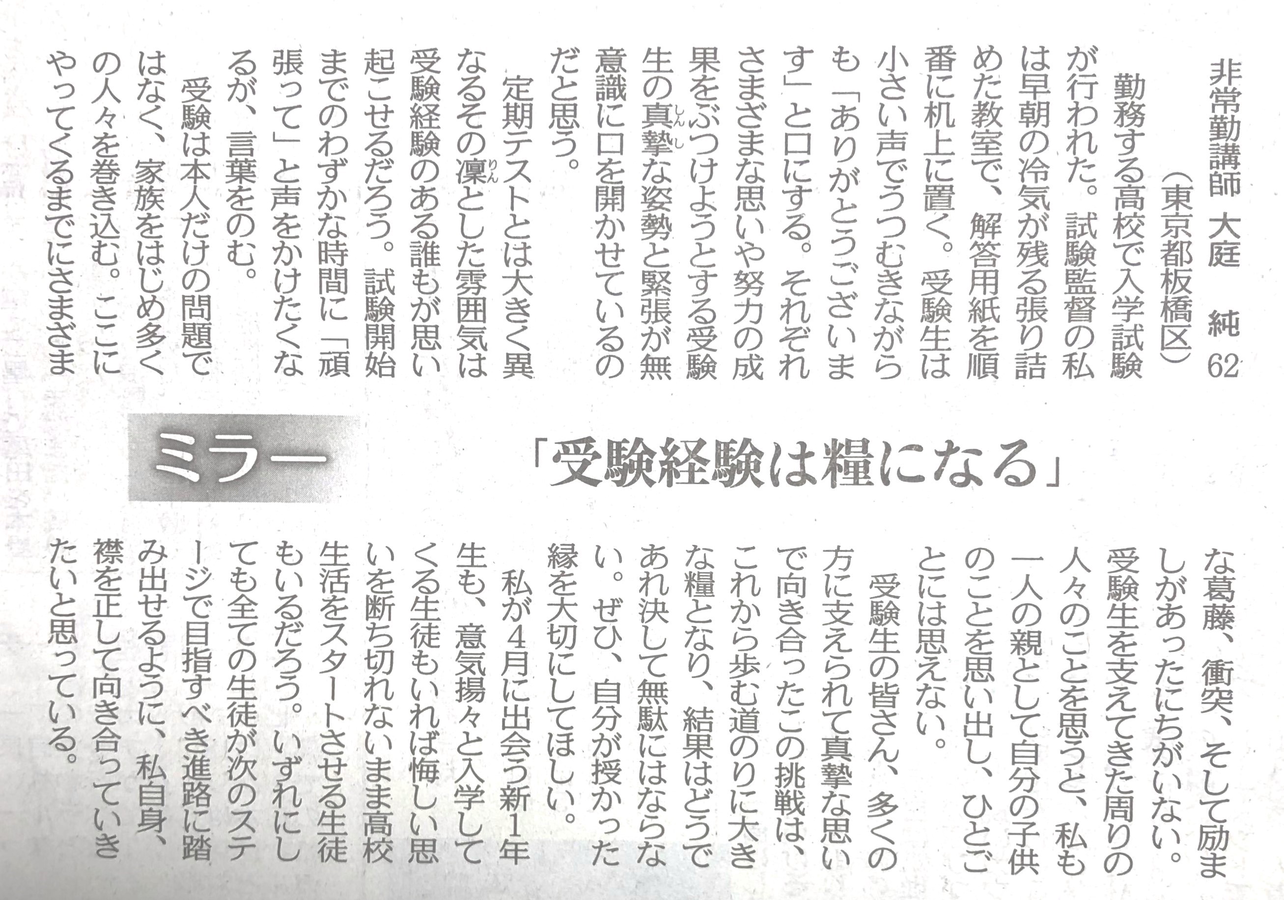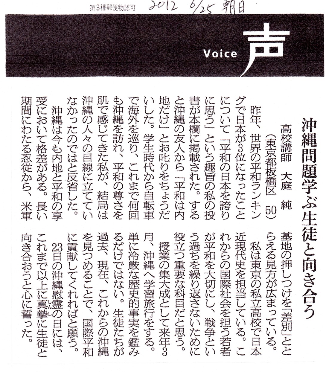 ※ その時々の思いを投稿してみました。 宜しければお読みください。 (不鮮明な部分もありますがご了承ください。) 2025年12月3日 讀賣新聞 2025年9月29日 朝日新聞 2025年6月30日 東京新聞 ![]() 2025年4月4日 朝日新聞 2024年11月12日 読売新聞 ![]() 2024年10月3日 毎日新聞 2024年2月19日 東京新聞 2023年2月28日 朝日新聞 ![]() 2022年8月2日 朝日新聞 ![]() 2021年3月26日 朝日新聞 ![]() 2020年4月4日 読売新聞 ![]() 2019年8月30日 朝日新聞 ![]() 2016年6月27日 朝日新聞 ![]() 2015年7月4日 朝日新聞 2015年1月6日 朝日新聞 ![]() 2014年6月22日 朝日新聞 ![]() 2014年3月9日 朝日新聞 ![]() 2013年9月19日 朝日新聞 ![]() ![]() 2013年6月14日 朝日新聞 ![]() 2013年3月18日 朝日新聞 ![]() 2012年12月9日 朝日新聞 ![]() 2012年 朝日新聞 ![]() 2012年6月25日 朝日新聞 ![]() 2012年 読売新聞 ![]() 2011年6月12日 朝日新聞 ![]() 2009年8月12日 朝日新聞 ![]() 2008年12月31日 朝日新聞 ![]() 2007年 朝日新聞 ![]() 2006年11月7日 朝日新聞 ![]() 2002年6月23日 朝日新聞 ![]()